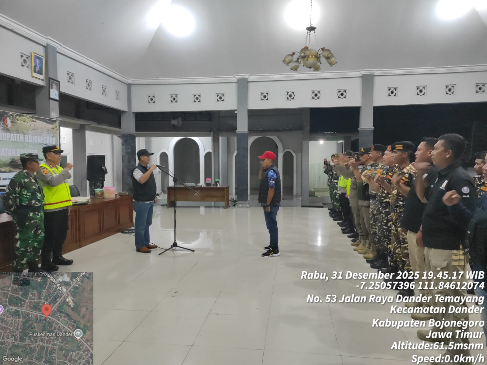 Kecamatan Dander Kabupaten Bojonegoro - Apel Siaga Pengamanan Malam Tahun Baru 2026 digelar di Pendopo Kecamatan Dander, Rabu (31/12/2025) malam. Acara yang...