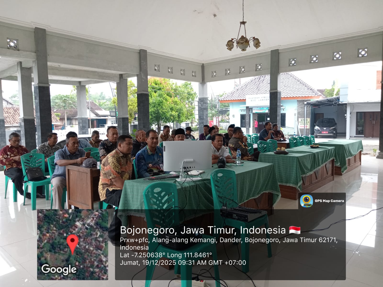 Pendopo Kecamatan Dander, 19 Desember 2025 Kecamatan Dander - acara Zoom Sosialisasi tertib pengelolaan keuangan Desa, Kepatuhan Entri Data Aplikasi Real Time Monitoring Village...